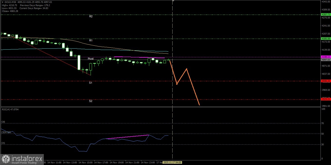 Pada hari Senin tanggal 17 November 2025 ini Emas nampaknya masih akan melanjutkan pelemahannya menuju ke level support terdekatnya