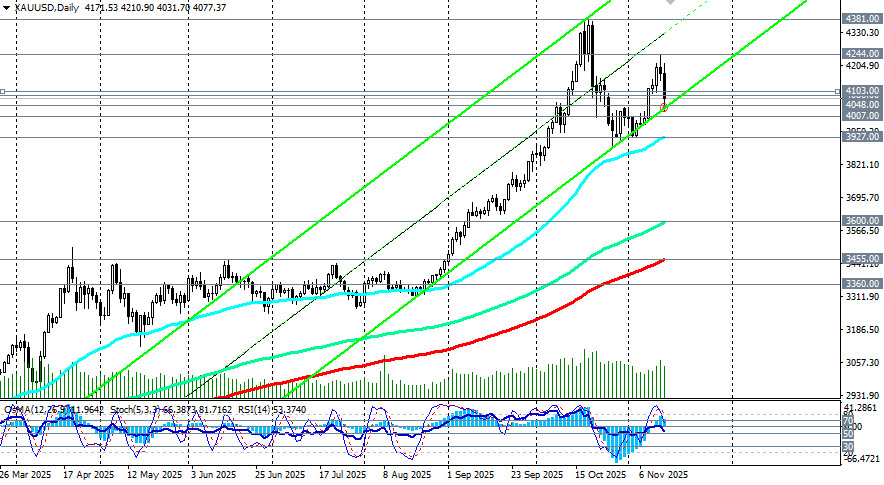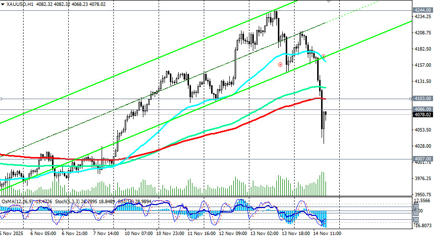 Так, уже к 14:30 (GMT) котировки снизились к отметке 4032.00, соответствующей внутридневному и 4-дневному минимуму. К моменту публикации данной статьи, пара XAU/USD торговалась вблизи отметки 4078.00, отойдя от сегодняшнего минимума на 460 пунктов.