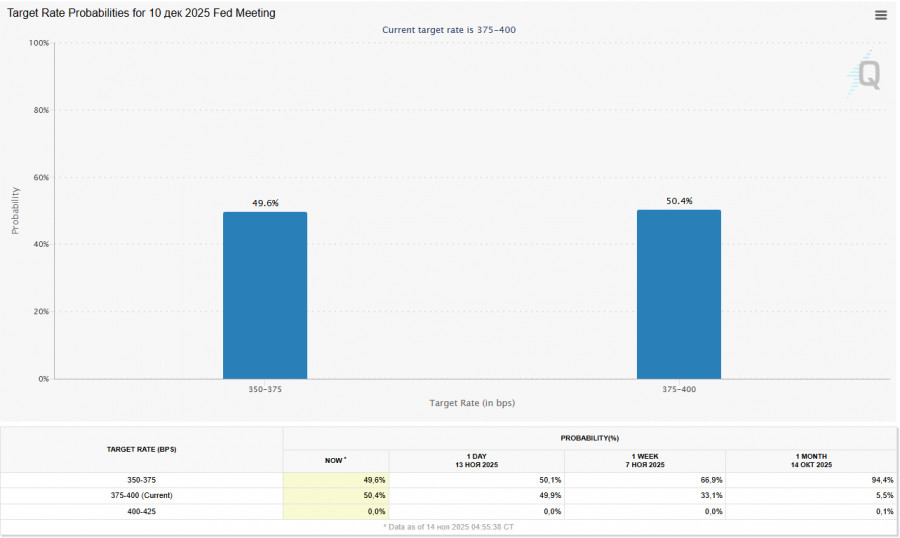 - Осторожные высказывания официальных лиц ФРС привели к снижению ожиданий снижения ставки в декабре.